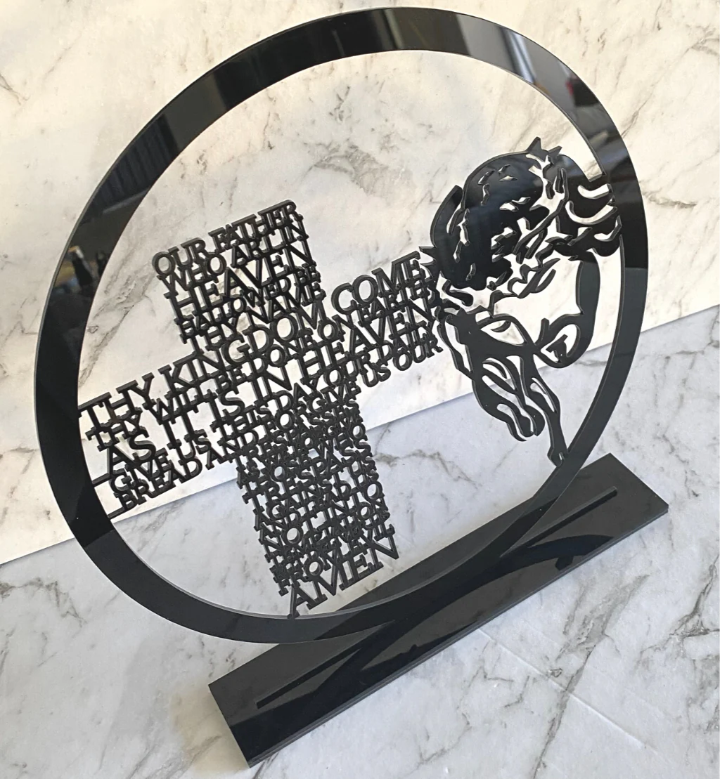 A sentimental gift and precious home décor piece. The Prayer Wreath is laser cut from high grade bamboo wood or acrylic to suit your homes. Option to be used as a wall plaque or free standing.